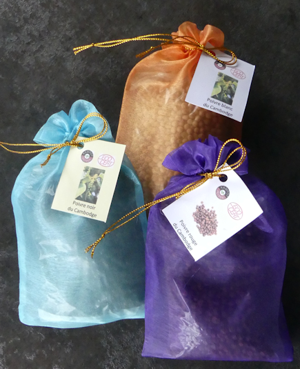 | Poivre noir de Kampot : baie presqu'à maturité, puissant et subtil, parfait pour les viandes rouges.